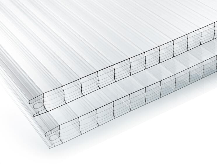 蜜桃视频网页版塑膠4層陽光板采用進口聚碳酸酯為主要原料隔熱性能更好,適用於對保溫節能有更高要求的場合。通過ISO9001:2008質量體係認證標準。廣泛用於各種商業建築的內外飾、工程裝潢、農業溫室及養殖大棚、自行車棚陽台遮陽雨棚、屋頂休息亭棚公用設施的采光頂棚、高速公路及城市高架隔音屏障等。